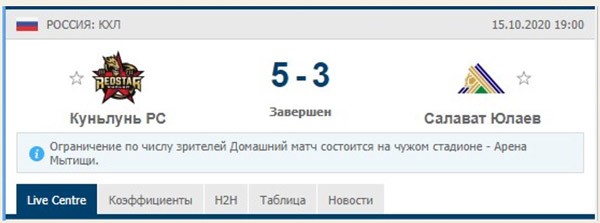 - «Куньлунь Ред Стар» не выигрывает в основное время на своей площадке у команды «Салават Юлаев» на протяжении 6 матчей.